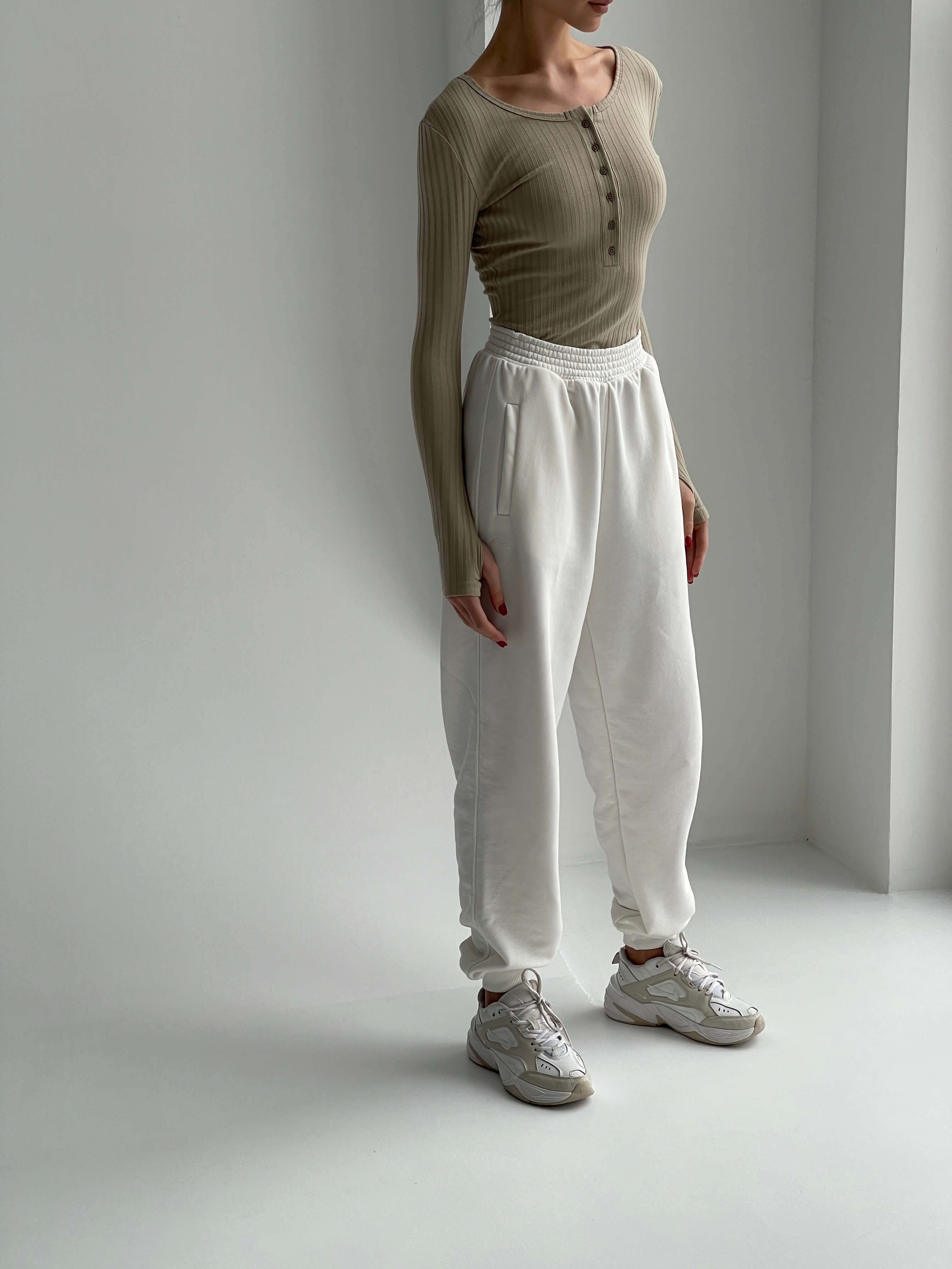 ШТАНЫ ОВЕРСАЙЗ ИЗ ФЛИСА ПРЯМЫЕ, ХОЛОДНЫЙ ШАМПАНЬ